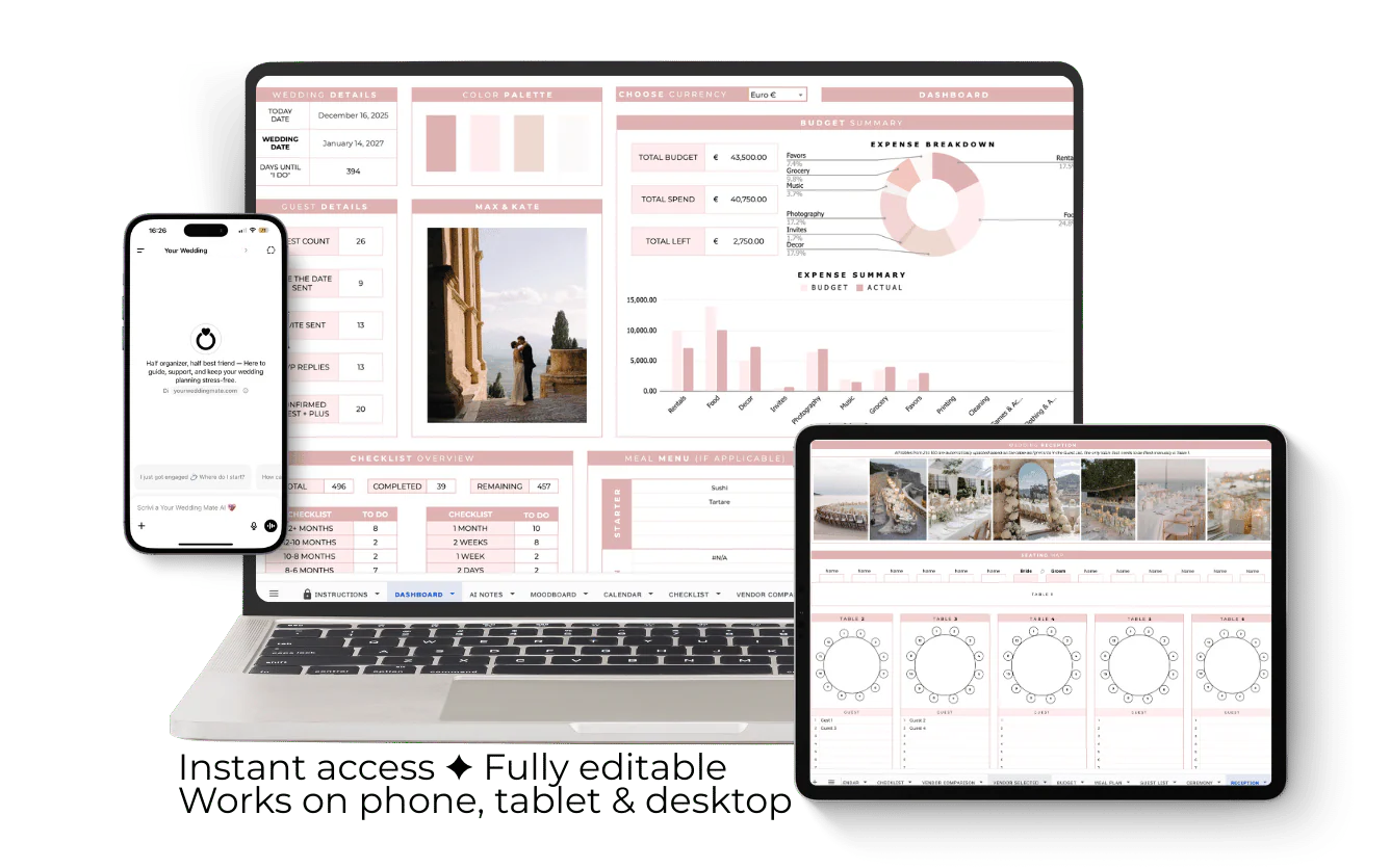 A structured Google Sheets system that keeps your budget, guest list and deadlines perfectly organized.